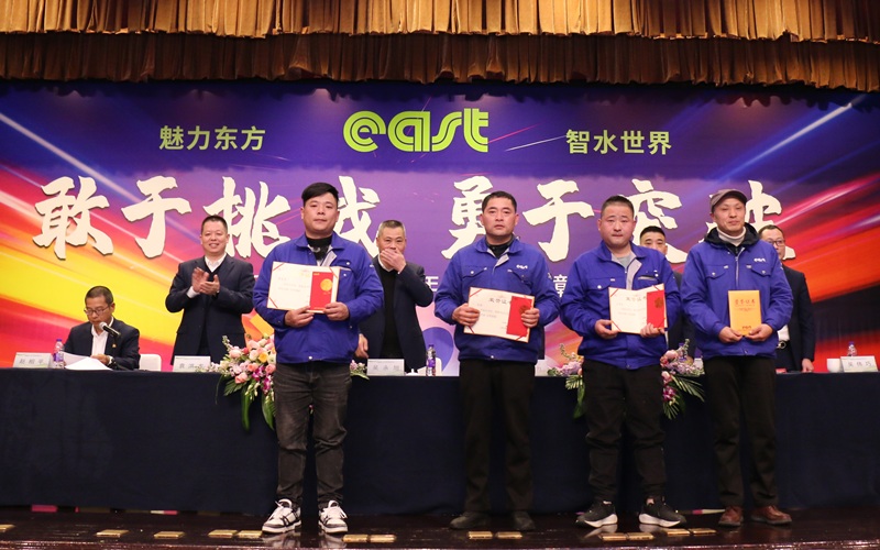 2024年,面对宏观经济持续低迷和外部压力增大的复杂环境,东方泵业全体员工携手并肩,积极应对风险挑战,抢抓发展机遇,企业经营稳中有进,取得了显著的成绩和进步。生产方面,软硬件实力进一步增强,生产能力、加工设备、质量、品质和技术均有提升;销售方面,积极推动行业转型,抢占三高一低优质市场,总体业绩向上,行业和订单结构优化明显。通过全体东方人的共同努力,集团综合实力进一步增强,保持了健康、稳定、持续发展的良好态势。董事长吴永旭先生在讲话中特别指出:“这些成果来之不易,是全体员工用智慧和汗水拼搏而来的!”他代表董事会向辛勤工作的全体员工及其家属、关联单位和各界朋友表示诚挚的感谢和节日的问候,并对获奖同仁表示热烈祝贺。同时,吴董、吴总一致强调,2025年,东方泵业将继续坚持集团“四化”建设,以产品智慧化、生产智能化、管理信息化、销售行业化为抓手,让“四化”成为驱动东方未来发展的引擎。